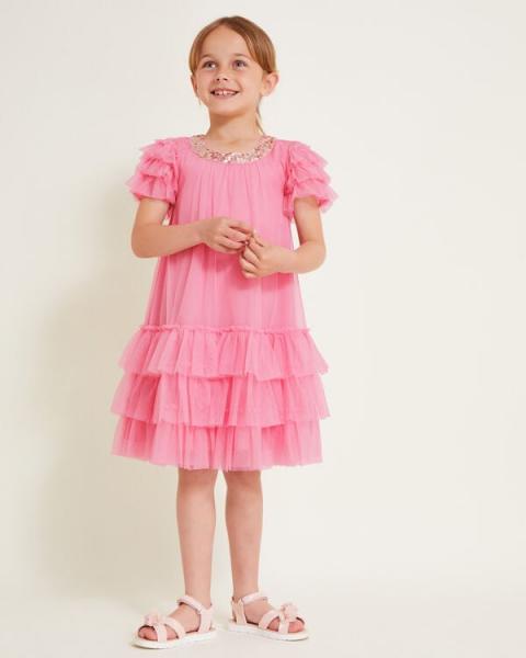 Monsoon Dresses | CHILDREN Guilia Flutter Sleeve Floral Tulle Dress Pink