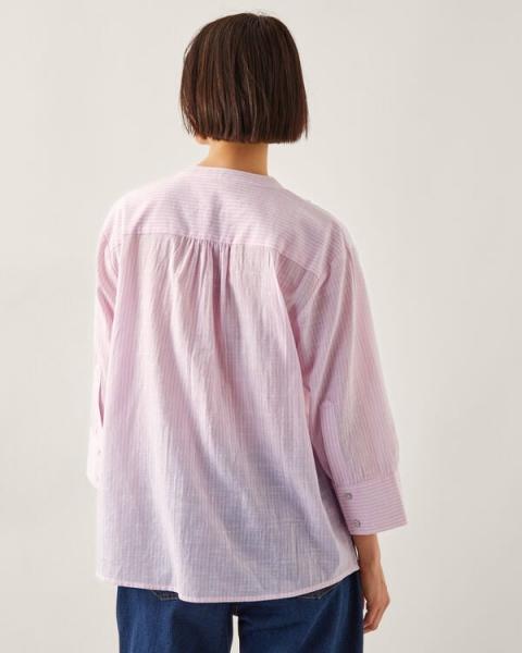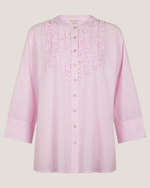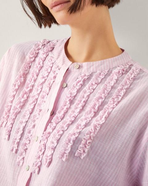 The Monsoon shirt: Summer edition. Featuring a pastel pink hue with a stripe finish, this cotton blouse is an easy, breezy option for anything from office to high street. Finished with cuff sleeves, a button-through fastening, and ruffle detailing to the placket. Pink