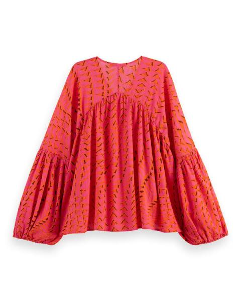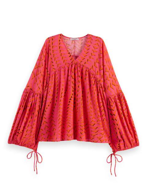 The brand: Redefining everyday dressing, Scotch and Soda combine the classic with the contemporary. Born in Amsterdam, they champion individuality and self expression through colour, print and practicality. The product: Like air con you can wear. Fun, floaty and ready for sunshine, this top is designed with billowy sleeves and a flouncy hem for a comfy all-day fit. Decorated with abstract triangles over the bright pink backdrop with a crinkled finish.The fabric and fit: Crafted from lightweight cotton. Sizing in-line with Scotch & Soda. Pink